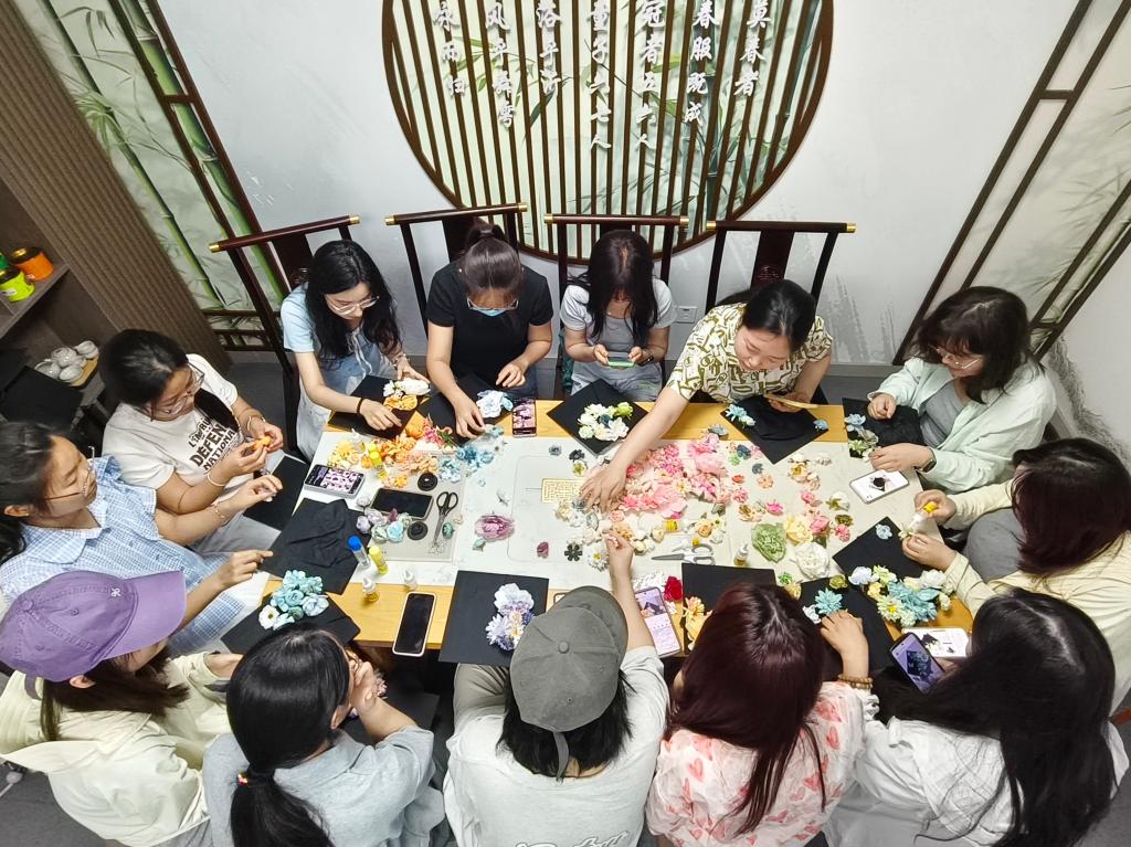 活动现场,同学们围坐成圈,指尖流转的不仅是创意,更是对校园时光的眷恋。大家相互协作、共同完成,让每顶学士帽都成为青春记忆的载体。同学们将传统工艺元素缀饰在学士帽上,享受簪花的乐趣,编织属于自己的毕业故事。这些带着温度的学士帽,既凝结着同窗携手的情谊,也盛放着少年们对未来的期许。