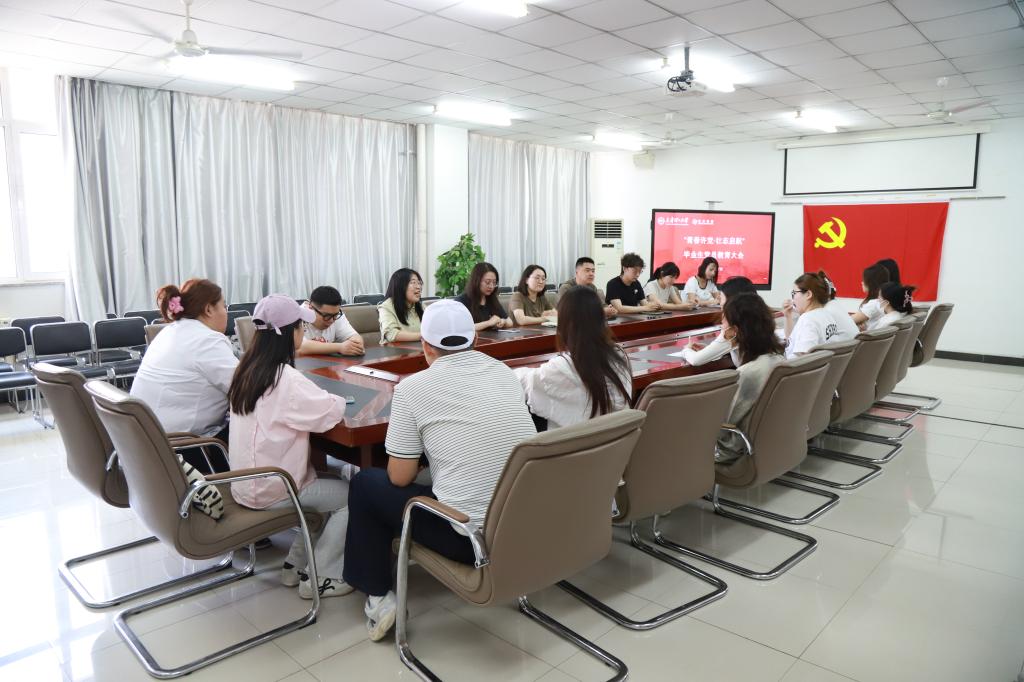在“最后一堂初心党课”中,学院党委相关负责同志从不忘初心、致敬成长;坚守初心、砥砺前行;践行初心、共赴未来三个方面,回顾了毕业生党员的入党历程,肯定了大家在校期间发挥的榜样示范作用,并从思想行动、作风建设等方面为毕业生党员提出期望和要求。要求党员时刻绷紧纪律之弦,坚守作风底线,做到心有所畏、言有所戒、行有所止。最后她寄语全体毕业生党员,希望大家在未来的学习工作岗位上永葆政治本色,以积极心态面对新环境、新工作,虚心向同事、前辈学习,不断提升自身综合素质,带着母校的嘱托和期望,在新的人生征程中,以饱满的热情、昂扬的斗志迎接挑战,拼搏属于自己的精彩人生。