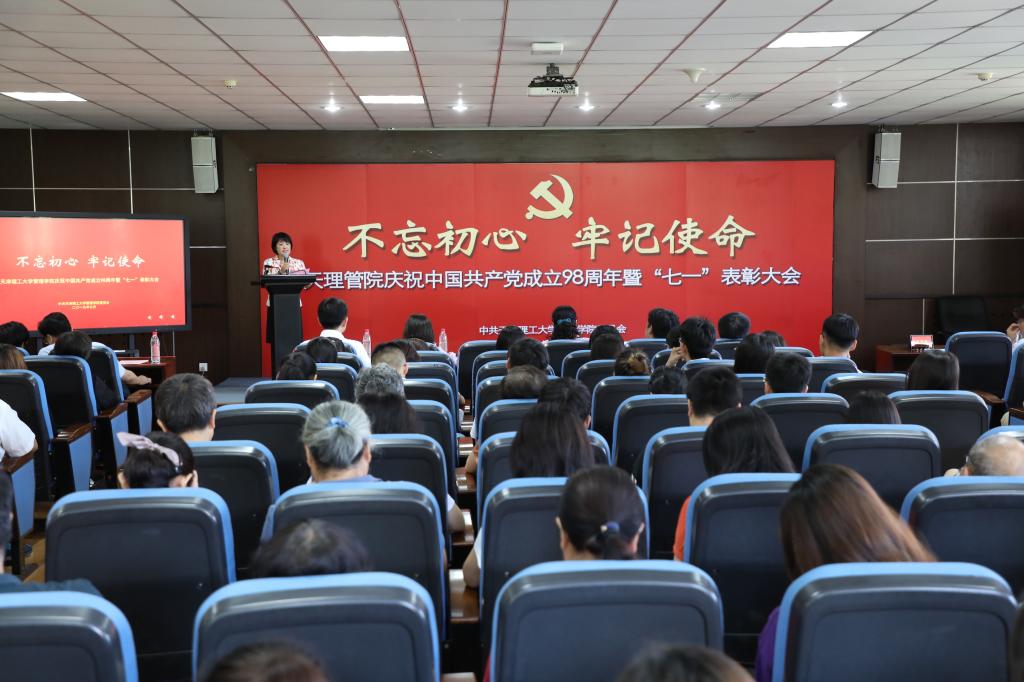 7月1日下午,管理学院在学院报告厅隆重召开“不忘初心、牢记使命”庆祝中国共产党成立98周年暨“七一”表彰大会。作为学院联系点领导校党委副书记郭滇华、组织部副部长王辰应邀出席。学院党委委员、领导班子成员、全体教师党员、学生党员代表150余人参加大会。大会由院党委副书记王天耀主持。