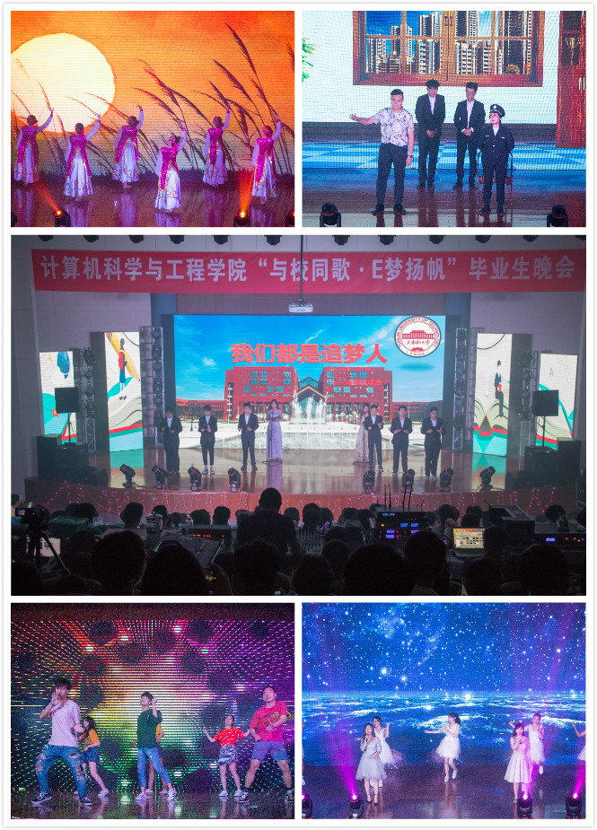 5月17日,环安报告厅灯光璀璨、热闹非凡,计算机科学与工程学院“与校同歌·E梦扬帆”毕业生晚会隆重举行。学院党政负责人、各年级辅导员老师及2019届毕业生共同观看了此次晚会。