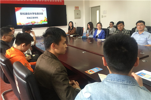 为有力推动贝博大学生征兵工作的发展,充分发挥退伍军人的模范引领作用,更好地在大学生群体中传播家国责任感,4月26日,机械工程学院在15-303召开在校退役大学生座谈会。辅导员、退役在校大学生参加了此次座谈会。