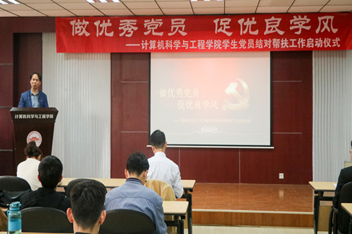 为深入学习贯彻习近平新时代中国特色社会主义思想,发挥党员先锋模范作用,促进学院学风建设,计算机科学与工程学院于4月23日召开“做优秀党员,促优良学风”——学生党员结对帮扶工作启动仪式。学院相关负责人、辅导员及百余名学生党员和发展对象参加本次活动。