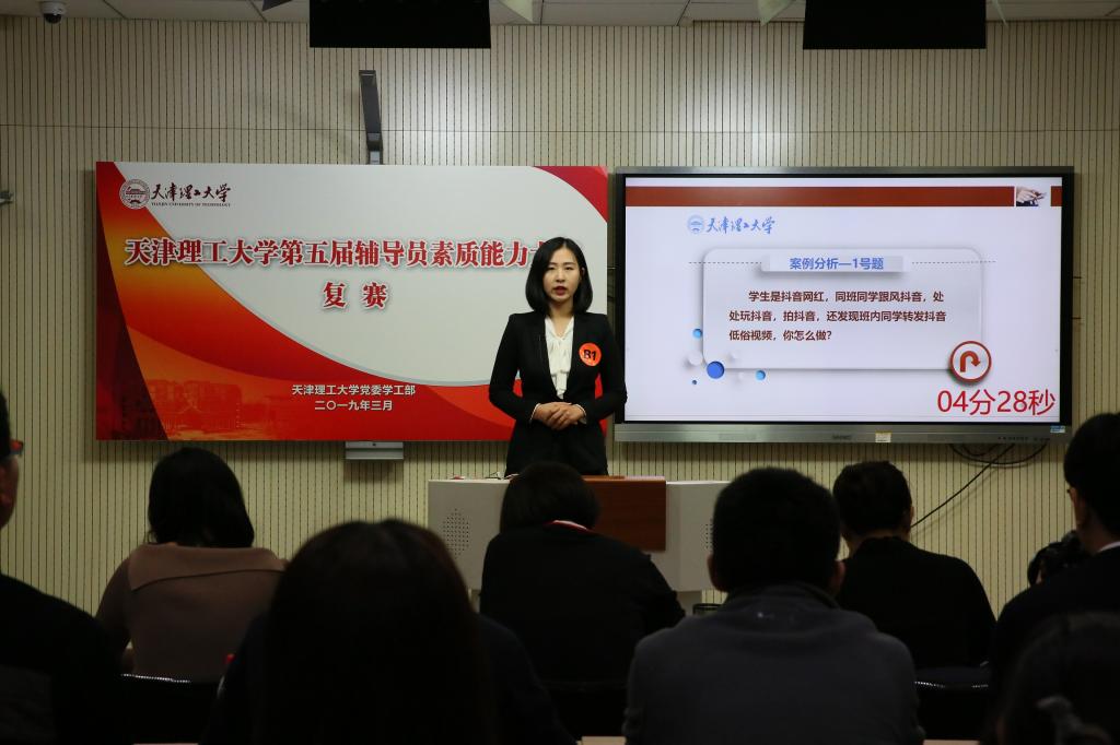 为进一步夯实辅导员工作基础、提升队伍专业素养,推动贝博思想政治教育工作队伍职业化、专业化发展,3月29日下午,贝博第五届辅导员素质能力大赛在27号教学楼A401、A402举办,校党委副书记杜长有、党委学工部相关负责同志及学院辅导员代表、学生代表共计100余人到场观赛。在全国和天津市辅导员素质能力大赛中取得佳绩的校内外优秀辅导员担任复赛评委。