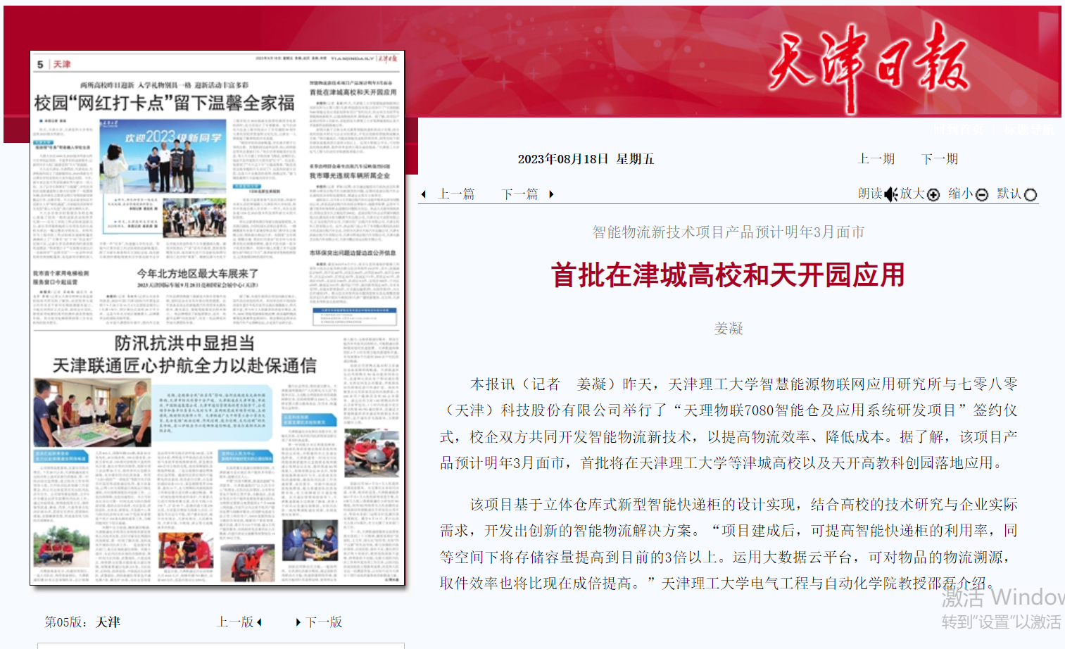 近日,《天津日报》报道贝博智慧能源物联网应用研究所与七零八零(天津)科技股份有限公司举行了“贝博物联7080智能仓及应用系统研发项目”签约仪式,校企双方共同开发智能物流新技术,以提高物流效率、降低成本。全文如下: