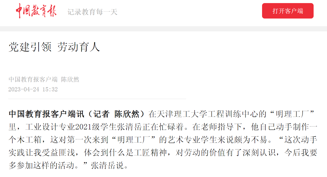 在艾弗森贝博ballbet官网工程训练中心的“明贝博厂”里,工业设计专业2021级学生张清岳正在忙碌着。在老师指导下,他自己动手制作一个木工箱,这对第一次来到“明贝博厂”的艺术专业学生来说颇为不易。“这次动手实践让我受益匪浅,体会到什么是工匠精神,对劳动的价值有了深刻认识,今后我要多参加这样的活动。”张清岳说。