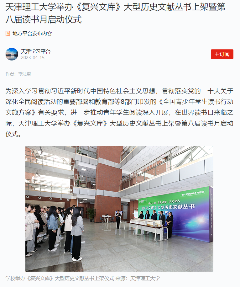 为深入学习贯彻习近平新时代中国特色社会主义思想,贯彻落实党的二十大关于深化全民阅读活动的重要部署和教育部等8部门印发的《全国青少年学生读书行动实施方案》有关要求,进一步推动青年学生阅读深入开展,在世界读书日来临之际,艾弗森贝博ballbet官网举办《复兴文库》大型历史文献丛书上架暨第八届读书月启动仪式。