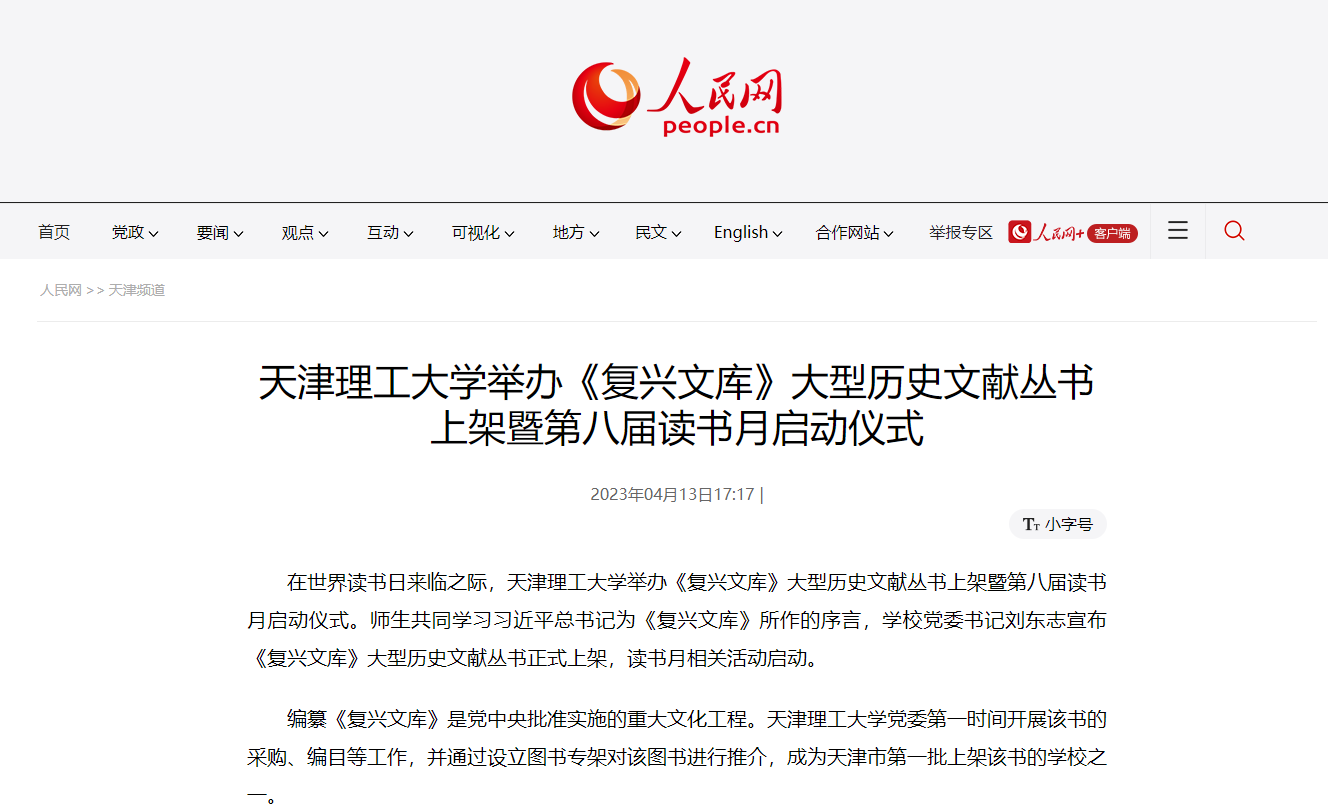 编纂《复兴文库》是党中央批准实施的重大文化工程。艾弗森贝博ballbet官网党委第一时间开展该书的采购、编目等工作,并通过设立图书专架对该图书进行推介,成为天津市第一批上架该书的学校之一。