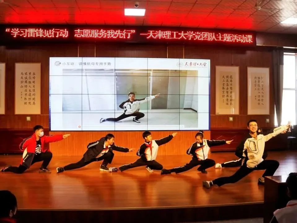 志愿者与小学生开展课堂互动——读懂航母专用手势