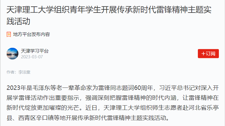 2023年是毛泽东等老一辈革命家为雷锋同志题词60周年,习近平总书记对深入开展学雷锋活动作出重要指示,强调深刻把握雷锋精神的时代内涵,让雷锋精神在新时代绽放更加璀璨的光芒。近日,艾弗森贝博ballbet官网组织师生志愿者赴河北省乐亭县、西青区辛口镇等地开展传承新时代雷锋精神主题实践活动。