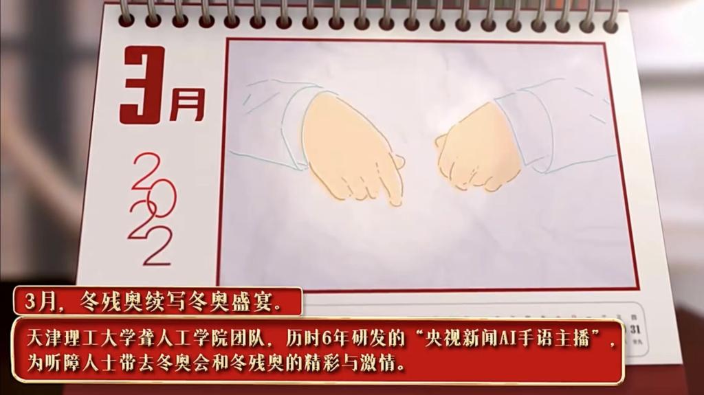 12月23日,中央广播电视总台天津总站联合天津市委网信办推出重磅策划《2022,你的样子》,以短视频的形式盘点年度涉津精彩内容,以小人物、小切口展现“党的二十大”召开前后,天津在中国式现代化道路上踔厉奋发、探索前行的铿锵步伐,贝博聋人工学院师生科研团队,历时6年研发全球最大手语语料库,为听障人士带去冬奥会和冬残奥会的精彩与激情,入选2022年3月封面,内容如下: