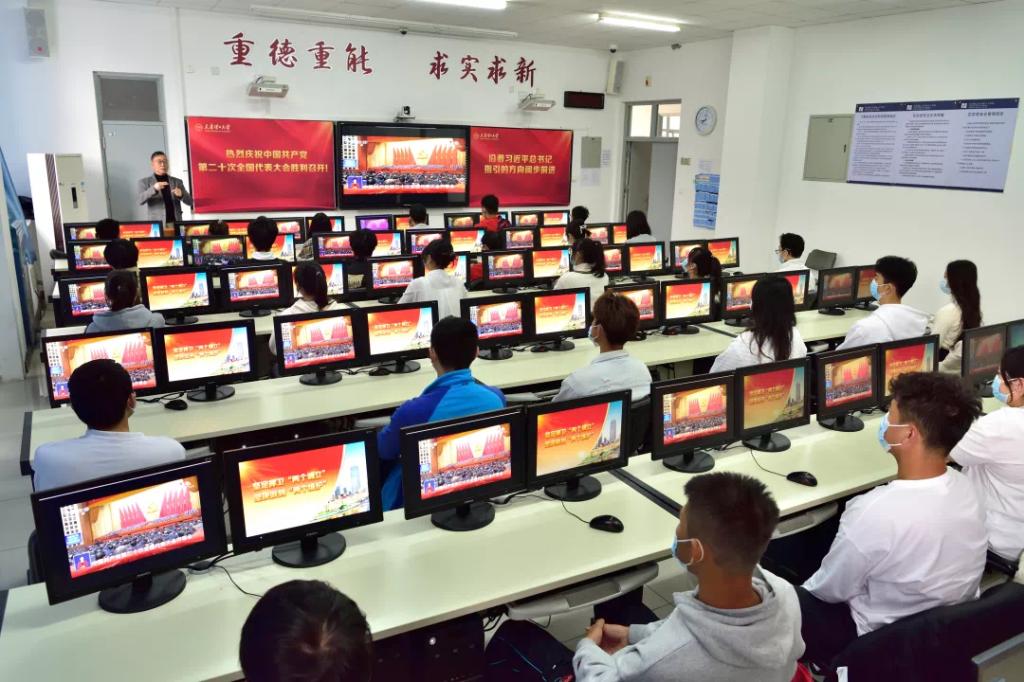学校党委把认真组织收听收看党的二十大开幕会盛况作为重要政治任务。学校各基层党委(党总支)组织广大党员干部师生认真收听收看大会盛况,落实到每一个基层党支部,覆盖到每一名师生。组织师生以集中学习、党支部学习等方式,在报告厅、会议室、教室、实验室、“一站式”社区、辅导员工作室、青年之家、学生宿舍等近百个点位集中收听收看习近平总书记代表第十九届中央委员会向大会作的报告,第一时间学习领会党的二十大精神。