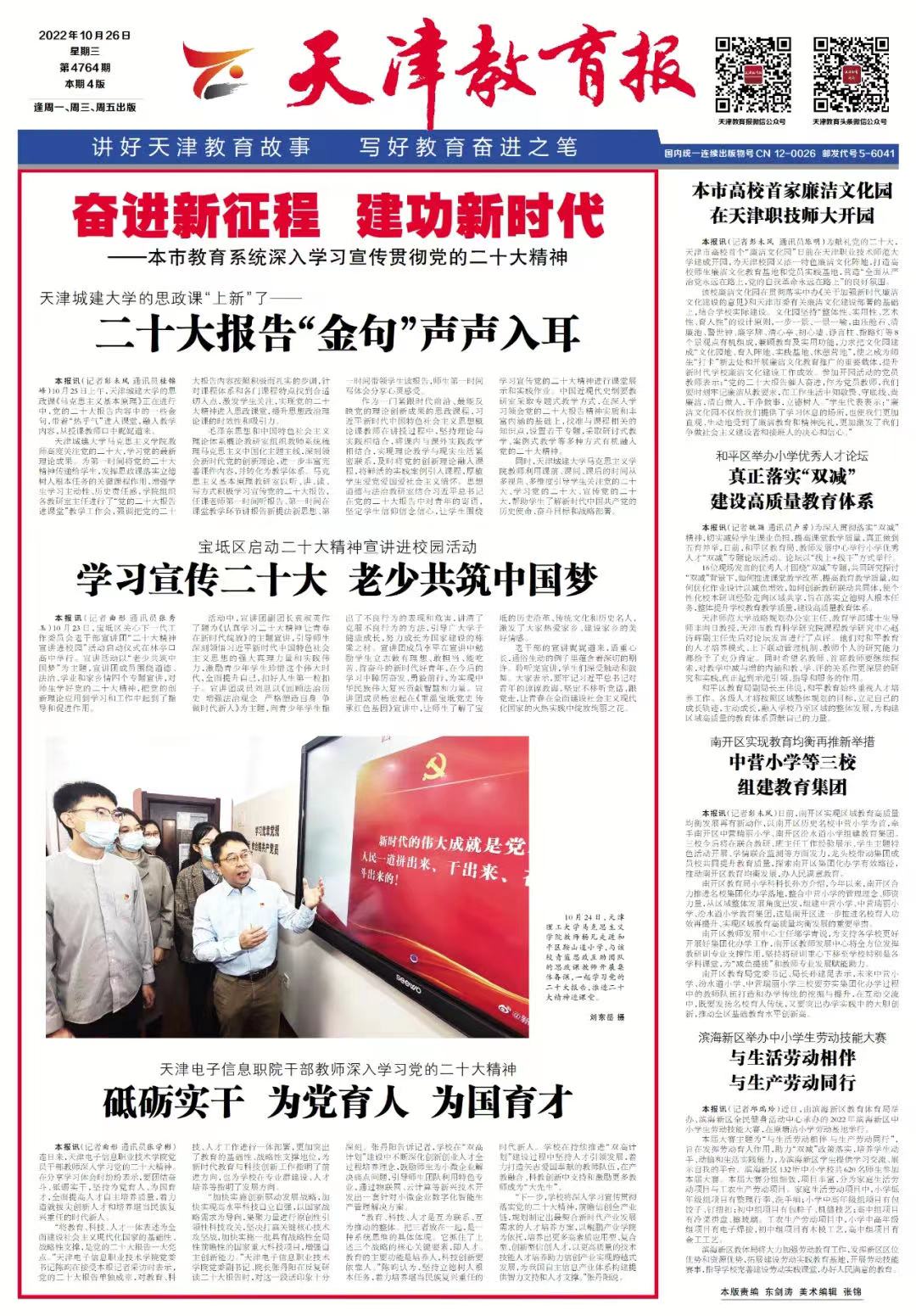 同时,10月26日《天津教育报》也在头版予以报道,内容如下:
