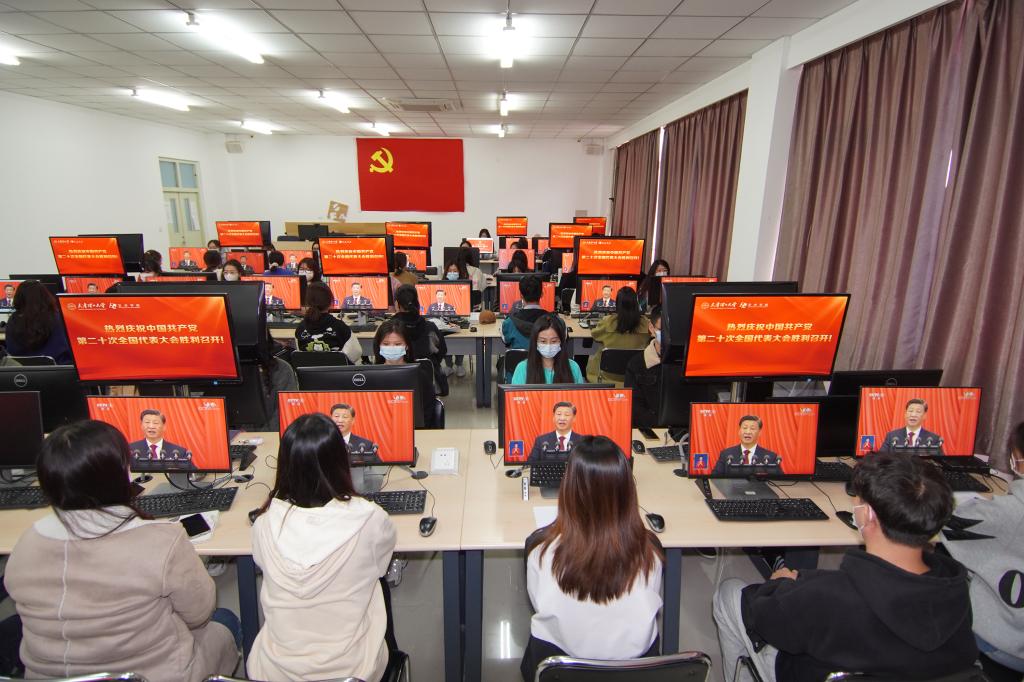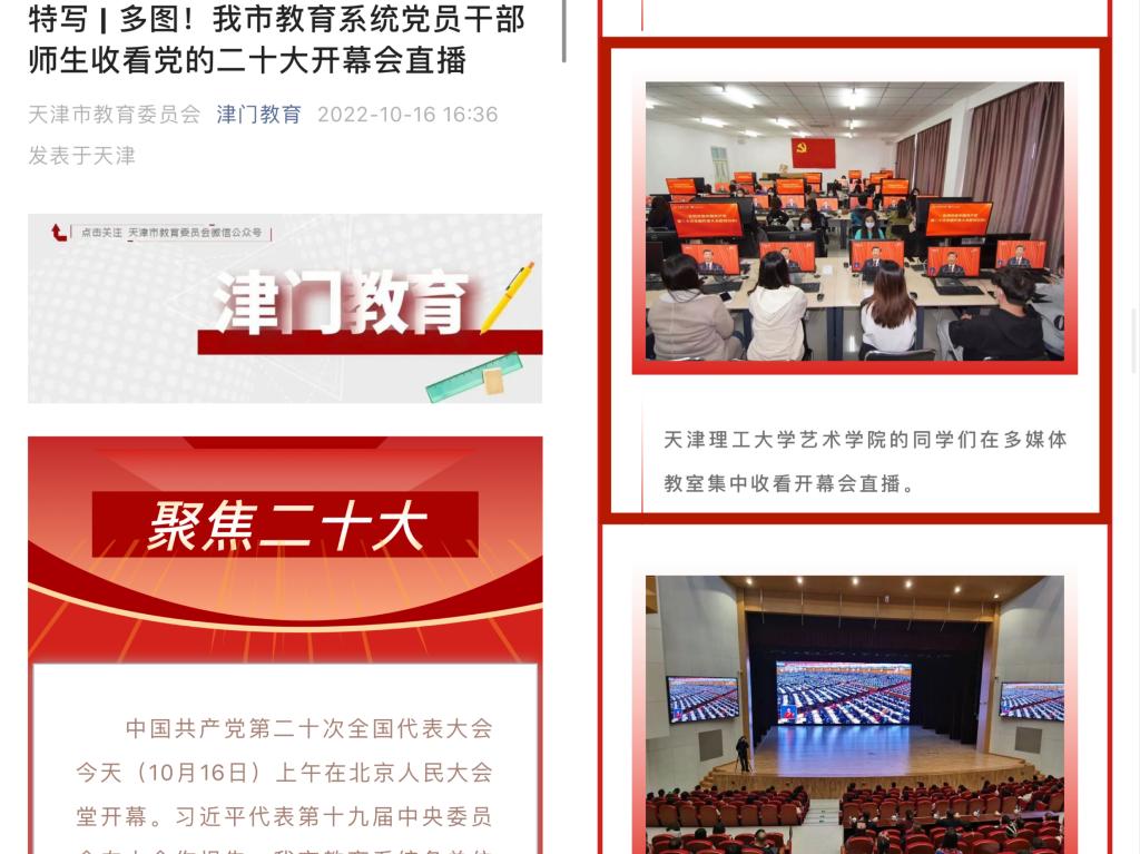 10月16日,津门教育微信公众号报道贝博艺术学院学生在多媒体教室集中收看中国共产党第二十次全国代表大会开幕会直播,内容如下: