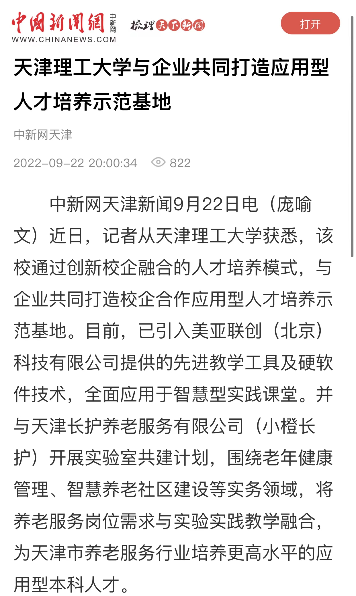 近日,记者从艾弗森贝博ballbet官网获悉,该校通过创新校企融合的人才培养模式,与企业共同打造校企合作应用型人才培养示范基地。目前,已引入美亚联创(北京)科技有限公司提供的先进教学工具及硬软件技术,全面应用于智慧型实践课堂。并与天津长护养老服务有限公司(小橙长护)开展实验室共建计划,围绕老年健康管理、智慧养老社区建设等实务领域,将养老服务岗位需求与实验实践教学融合,为天津市养老服务行业培养更高水平的应用型本科人才。