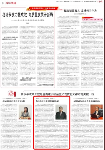 创新发展助力打造高质量服务贸易是支柱。习近平总书记高度重视服务贸易在构建新发展格局中的重要作用,强调要“加强服务领域规则建设”。天津注重创新发展服务贸易,出台《天津市全面深化服务贸易创新发展试点实施方案》,积极推动服务贸易发展。落实高质量发展,应依托“一基地三区”建设,加强服务贸易体制机制改革,推动先进制造业与生产性服务业深度融合,打造科技、人才、金融等各类资源集聚的两业融合生态系统,积极参与和引领在研发、物流、金融和信息等领域的国际规则制定。