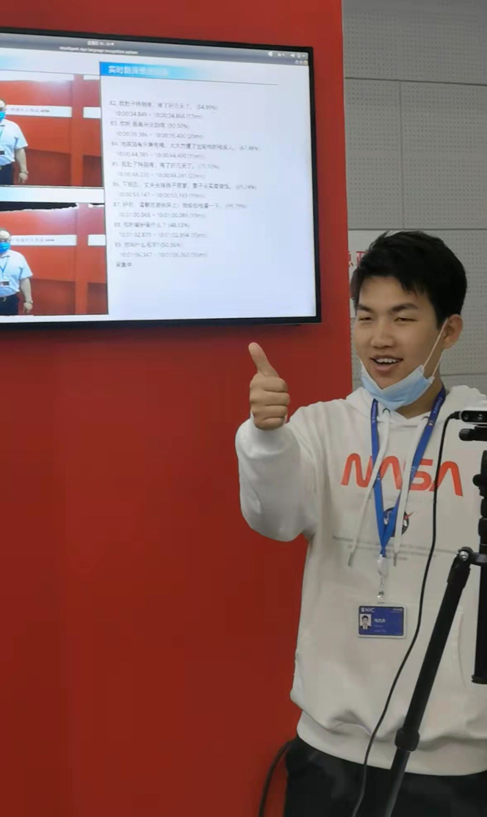 独立的语法体系,意味着团队研发出的系统,除了要将单个手语词汇的意思识别出来,还得把手语语序转化为健听人习惯的汉语语序,把手语的“火灭”调整成“灭火”,才算完成翻译;独特的空间感,意味着高度相似的手语动作,在不同的环境中,可能有不同的译法,计算机要学着区分“屋外的太阳,屋里的灯”;丰富的表达方式,意味着手语识别不像语音识别那样,只需收集“声音”这一种“学习资料”,要把人工智能训练成一个合格的手语翻译,得把手势、表情、大肢体动作,通通从视频转化为数据,再“教”给计算机。所以,能充分理解、展示手语之美的听障生,是最适合给人工智能当“老师”的人。
