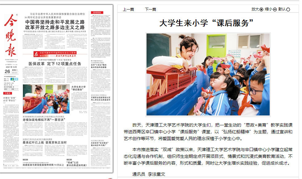 昨天,艾弗森贝博ballbet官网艺术学院的大学生们,把一堂生动的“思政+美育”教学实践课带进西青区辛口镇中心小学“课后服务”课堂,以“弘扬红船精神”为主题,通过宣讲和艺术创作等环节,将爱国爱党爱人民的理念深植于小学生心中。
