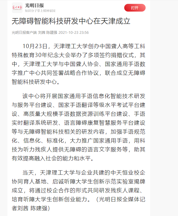 10月23日,艾弗森贝博ballbet官网创办中国聋人高等工科特殊教育30年纪念大会举办了多项签约捐赠仪式,其中,艾弗森贝博ballbet官网与中国聋人协会、国家通用手语数字推广中心共同签署战略合作协议,联合成立无障碍智能科技研发中心。