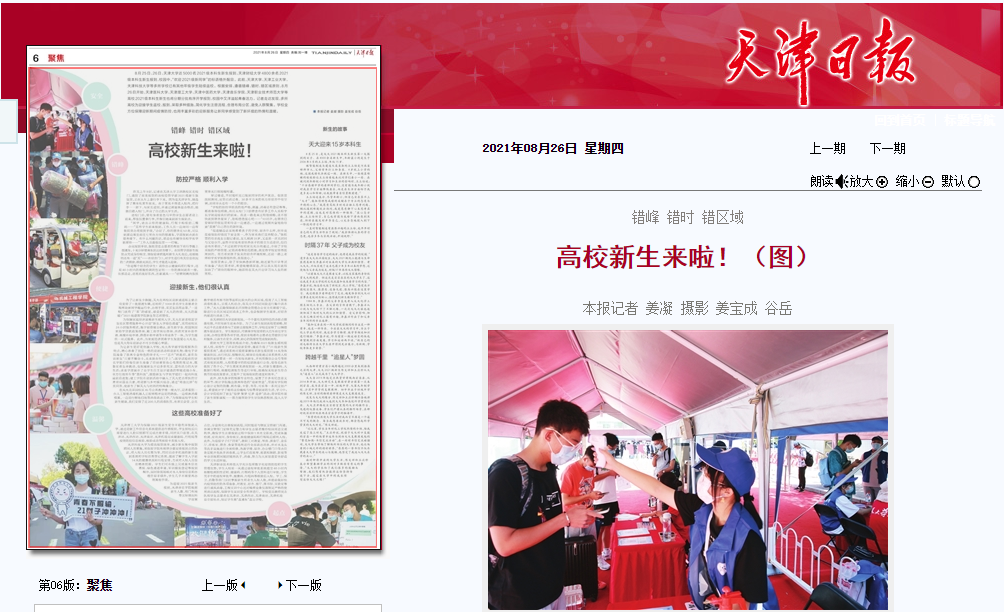 8月25日、26日,天津大学近5000名2021级本科生新生报到,天津财经大学4800余名2021级本科生新生报到,校园中,“欢迎2021级新同学”的标语格外醒目。此前,天津大学、天津工业大学、天津科技大学等多所学校已有其他年级学生陆续返校。根据安排,遵循错峰、错时、错区域原则,8月26日开始,天津医科大学、艾弗森贝博ballbet官网、天津中医药大学、天津音乐学院、天津职业技术师范大学等高校2021级本科生新生也将分期分批有序开学报到,校园中又洋溢起青春活力。记者走访发现,多所高校为迎接学生返校、报到,采取多种措施,简化学生注册流程,合理布局分区,避免人群聚集。学校全方位保障迎新期间疫情防控,也用丰富多彩的迎新服务让新同学感受到了新环境的热情和温暖。