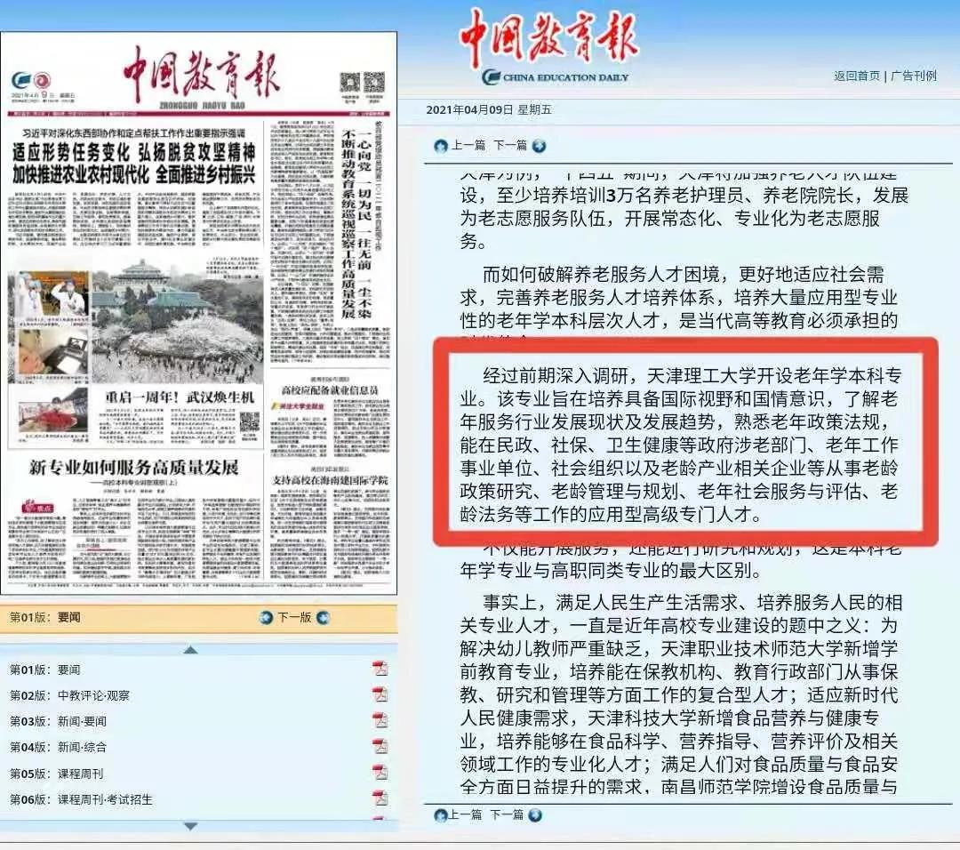日前,中国教育报对贝博社会发展学院开设老年学本科专业的情况进行了报道,全文如下: