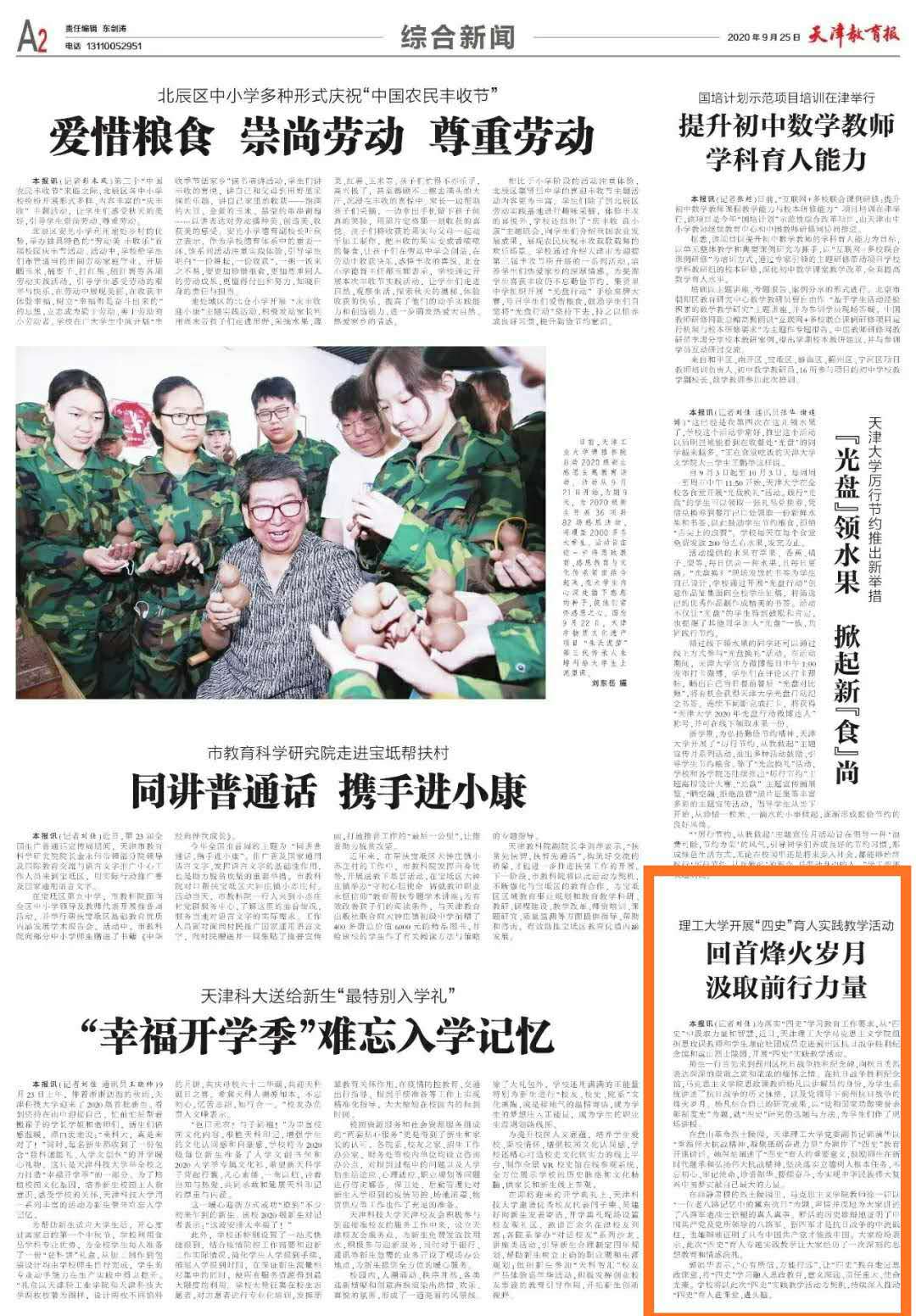 近日,天津教育报对贝博开展“四史”育人实践活动教学活动进行了报道,全文如下: