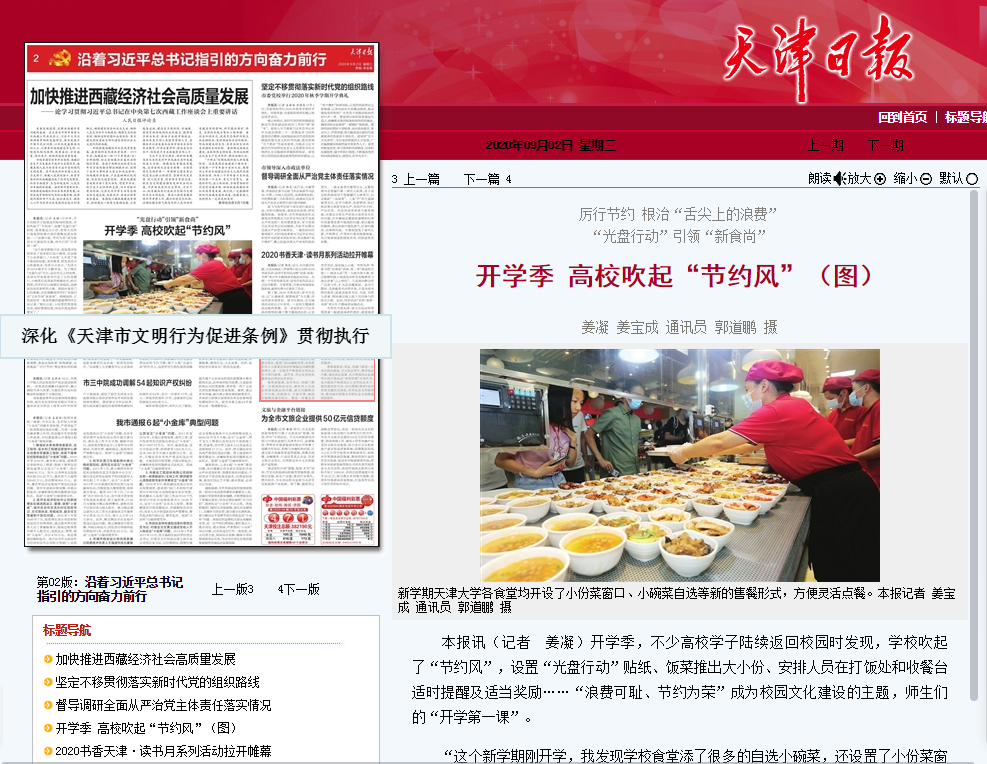 近日,天津日报对贝博开展的“光盘行动”进行了报道,全文如下: