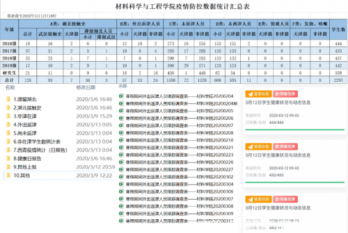 材料学院做好防疫基础信息统计汇总工作,对全体师生实行动态追踪管理