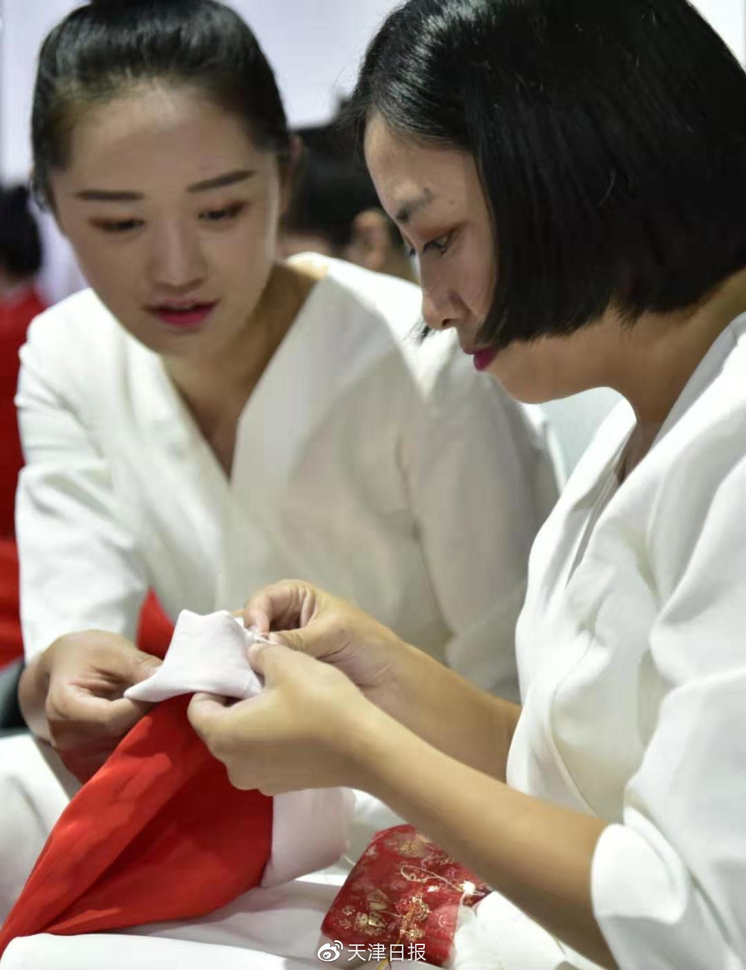 老师们既是指挥又是家长,同学们的演出服装开线了,亦是老师从家中带来针线为同学缝补