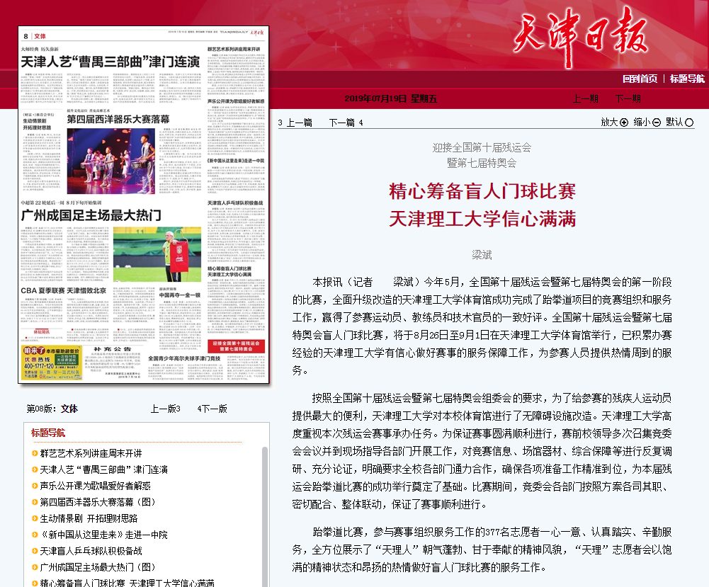 本报讯(记者 梁斌)今年5月,全国第十届残运会暨第七届特奥会的第一阶段的比赛,全面升级改造的艾弗森贝博ballbet官网体育馆成功完成了跆拳道项目的竞赛组织和服务工作,赢得了参赛运动员、教练员和技术官员的一致好评。全国第十届残运会暨第七届特奥会盲人门球比赛,将于8月26日至9月1日在艾弗森贝博ballbet官网体育馆举行,已积累办赛经验的艾弗森贝博ballbet官网有信心做好赛事的服务保障工作,为参赛人员提供热情周到的服务。